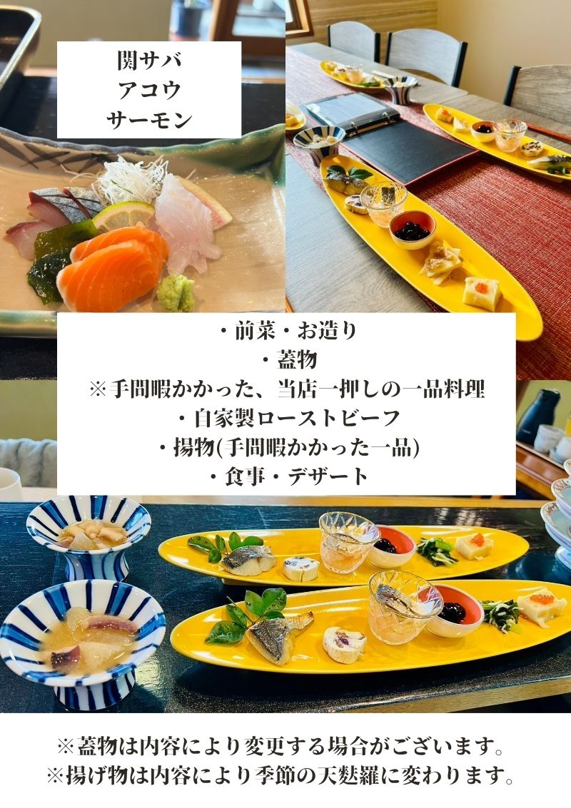会席料理につきましては、ご希望のお値段で品数調整するなどといったご相談にも乗っていますので、お電話もしくは公式LINEにてお問い合わせ下さい。